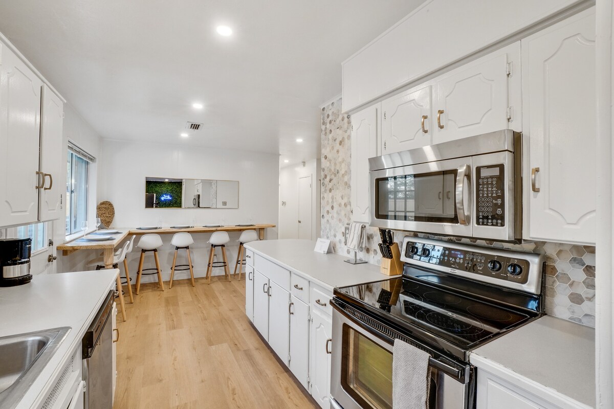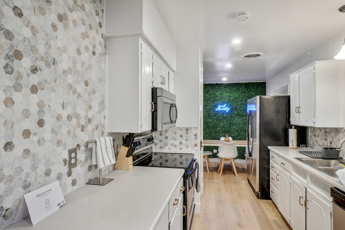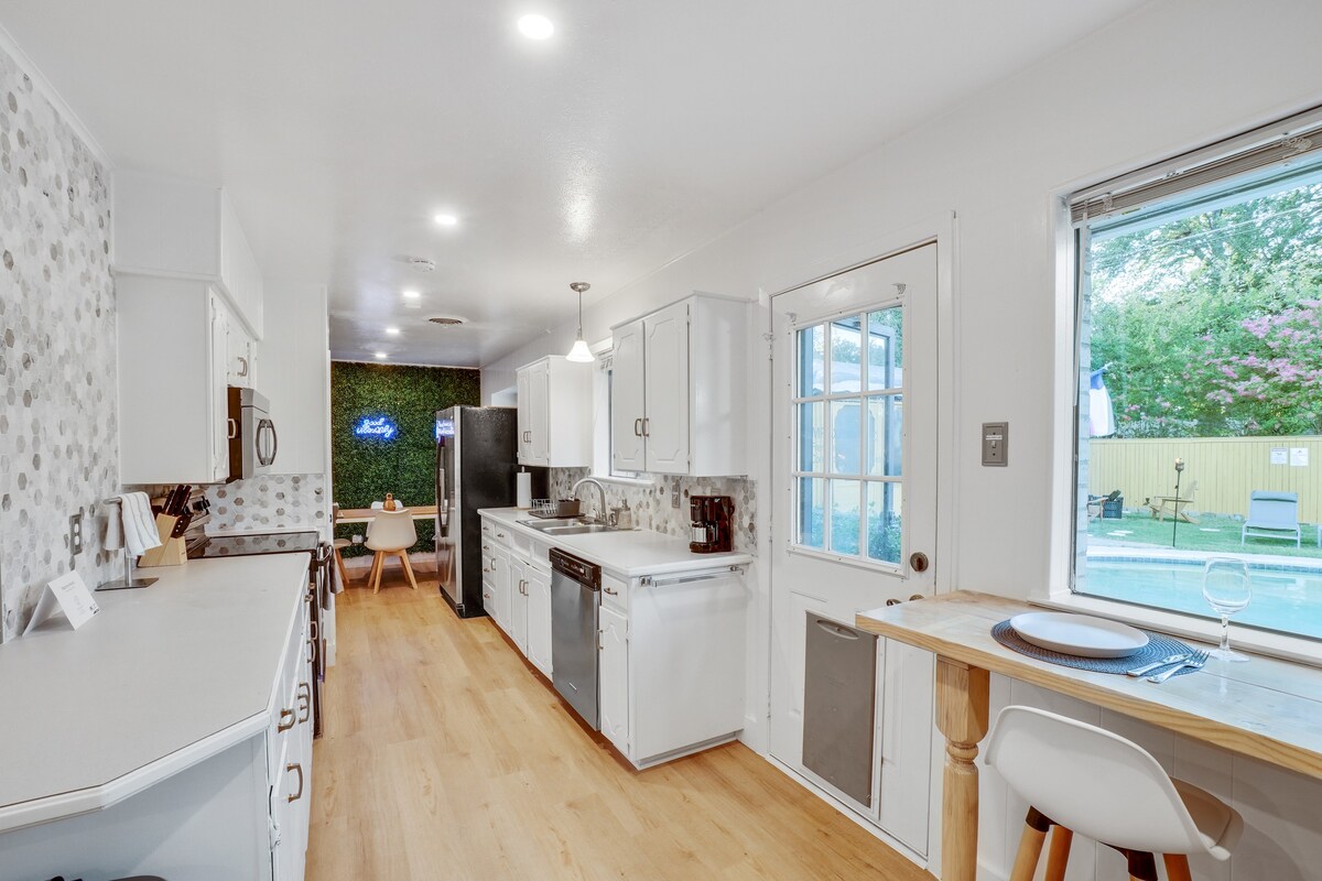 Get ready to enjoy lounge in the sun, and relax in the pool during your getaway. This gorgeous four-bedroom home is equipped with everything you need for an unforgettable vacation with family or friends. The interior is perfect for gatherings and socializing; our unique layout, amazing bedrooms, and backyard pool are designed for entertaining guests and bonding with your loved ones. Whether you're celebrating around the pool or enjoying cozy moments inside, you're just a step away from Downtown's restaurants, bars, and attractions. Our call center is available 24/7 during your stay to ensure your holiday experience is seamless and stress-free.