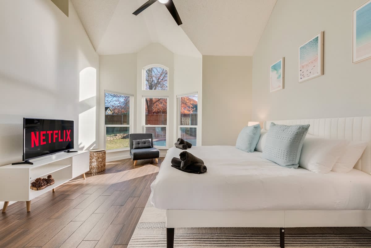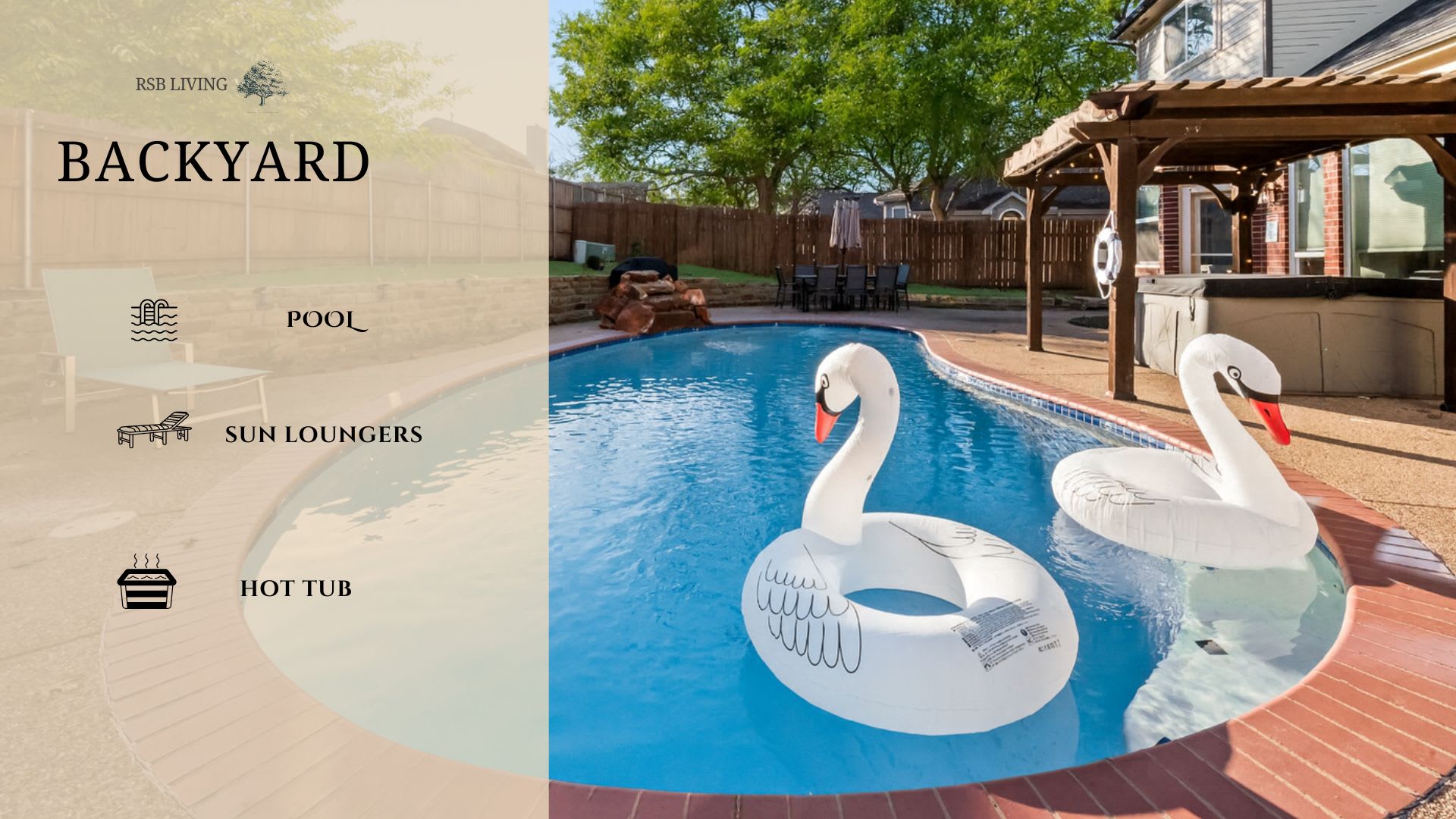 Create lasting memories in this spacious 5BR family retreat, built for comfort, fun, and connection. Splash in the private pool, soak in the hot tub, or enjoy endless entertainment with a home theater, arcade games, foosball, and pool table. Cook with ease in the full kitchen, relax in the cozy living room, or unwind in the master suite. With fast Wi-Fi, laundry, and a playful backyard, this home offers the perfect balance of relaxation and family-friendly fun.