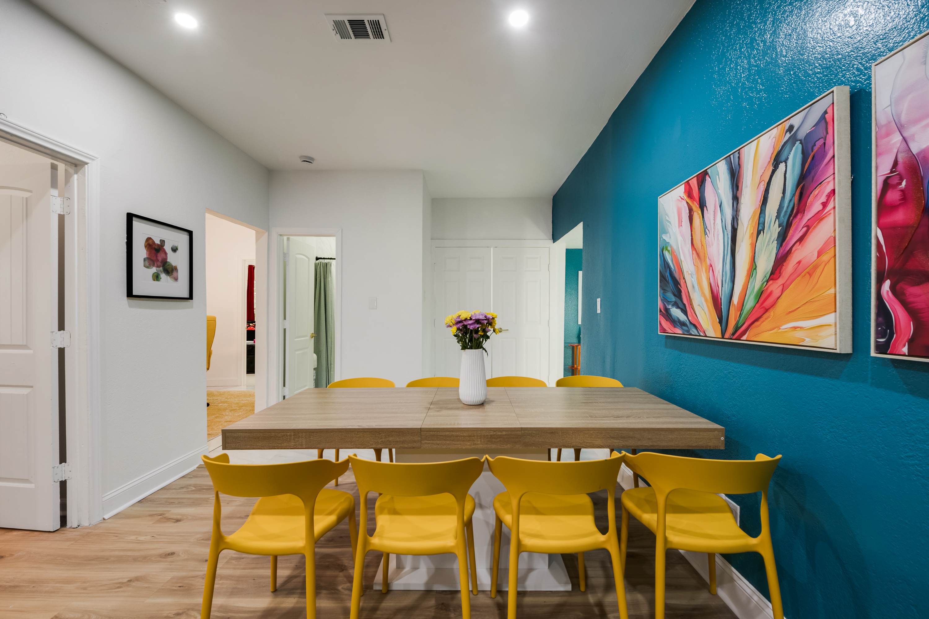 Experience Dallas luxury in this expansive 6-bedroom, 4-bath retreat just 5 minutes from Downtown and Fair Park/Cotton Bowl Stadium. Featuring elegant finishes throughout the spacious kitchen and living room. Gather on the large living room couch or enjoy the dedicated movie room with foosball table - perfect for both kids and adults. Ideal for groups seeking comfort with style in a prime location, just 8 miles from WTC. Your Dallas adventure