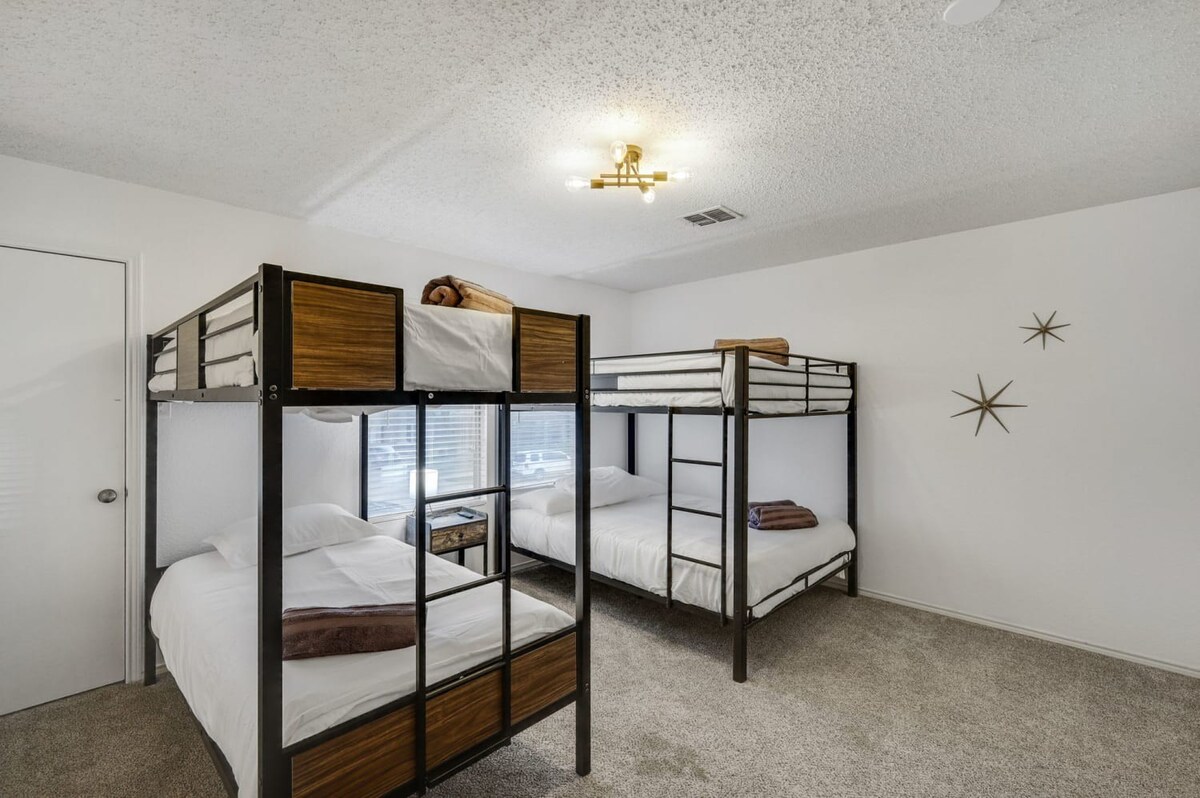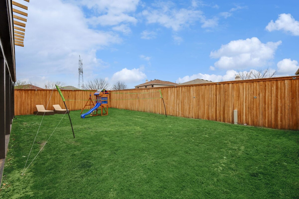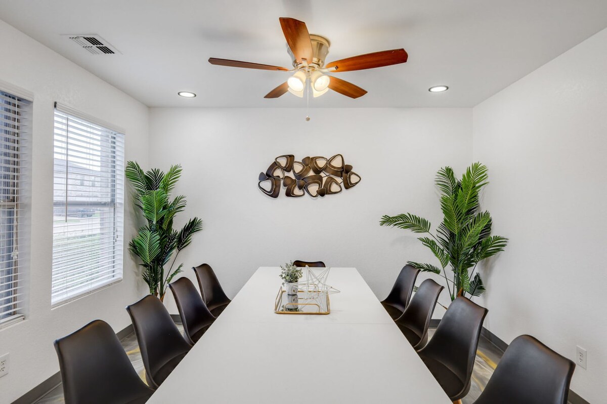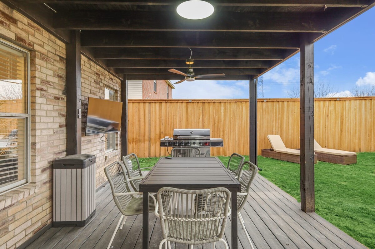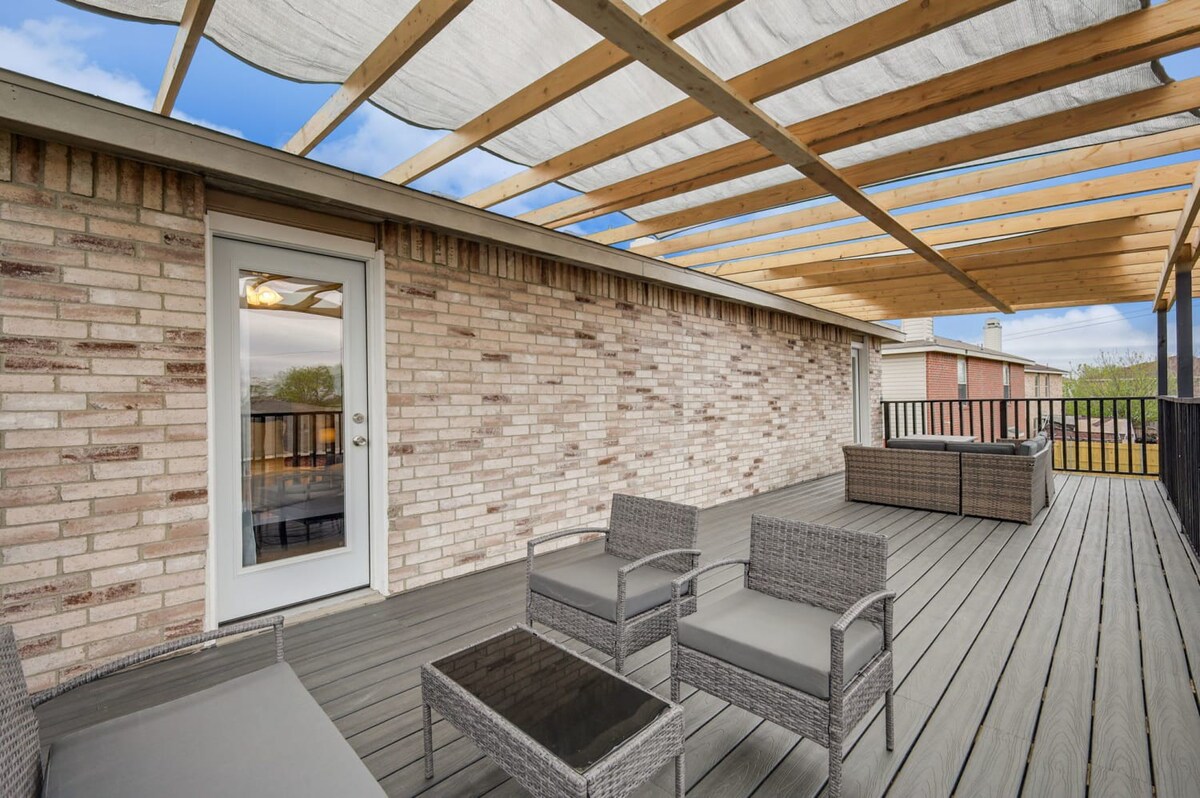 The whole group will enjoy easy access to everything from this centrally located home. Our 5-bedroom, 3.5-bathroom home in Grand Prairie is modern, stylish, and updated, providing the ideal space for an amazing stay with family, friends, and the kids!