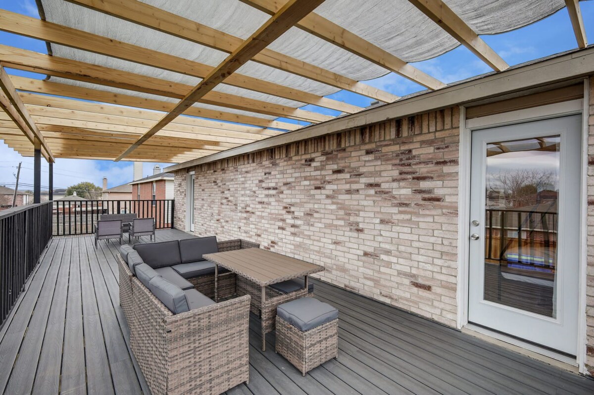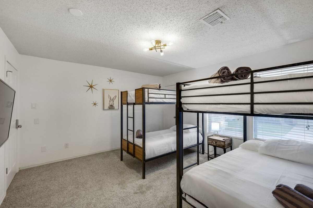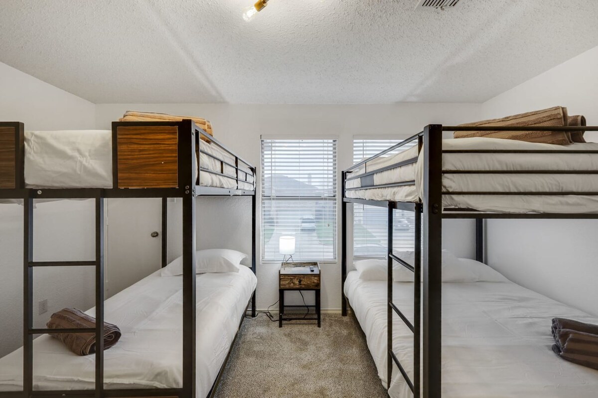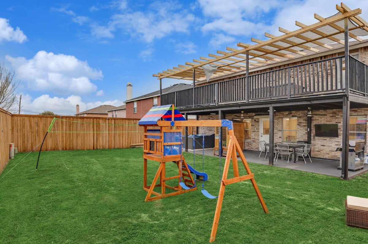 The whole group will enjoy easy access to everything from this centrally located home. Our 5-bedroom, 3.5-bathroom home in Grand Prairie is modern, stylish, and updated, providing the ideal space for an amazing stay with family, friends, and the kids!