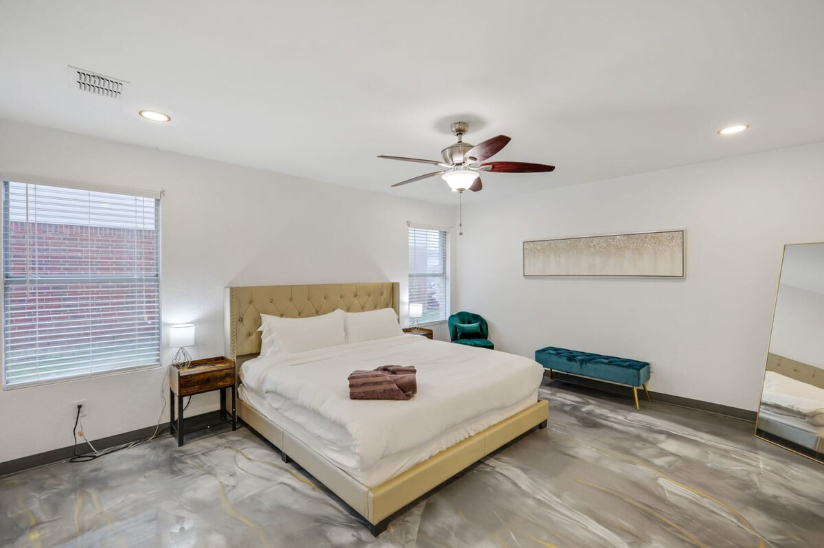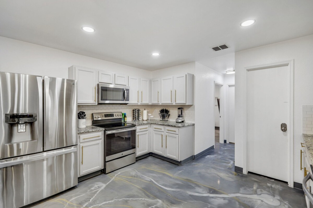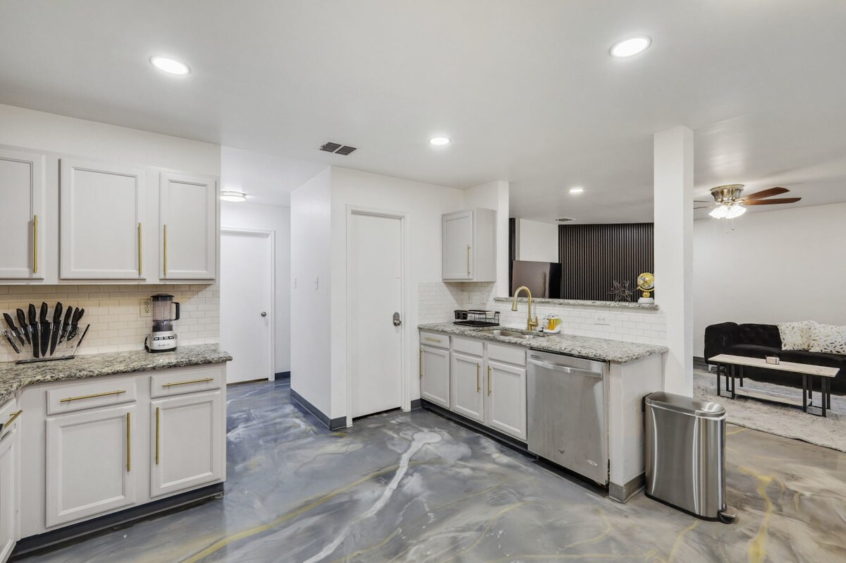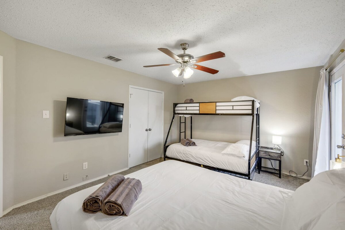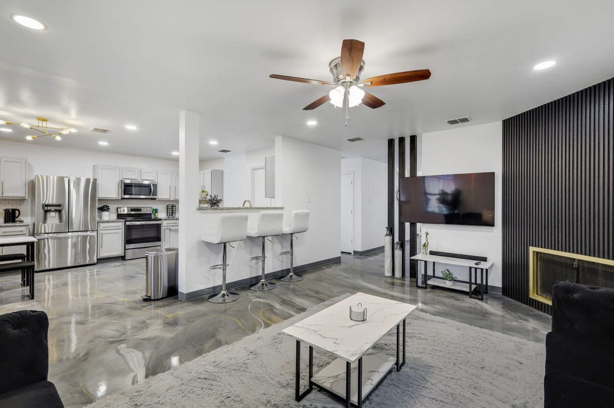 The whole group will enjoy easy access to everything from this centrally located home. Our 5-bedroom, 3.5-bathroom home in Grand Prairie is modern, stylish, and updated, providing the ideal space for an amazing stay with family, friends, and the kids!