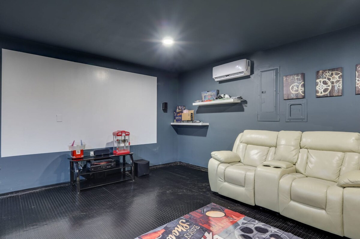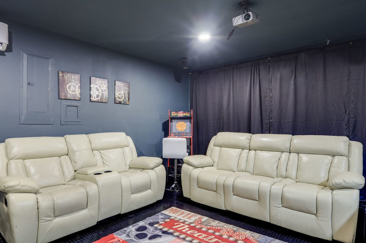 Enjoy the cinema room with a sound system, a fully equipped kitchen, and an amazing backyard with a big pool, perfect for relaxation and enjoyment. Welcome to your home away from home!