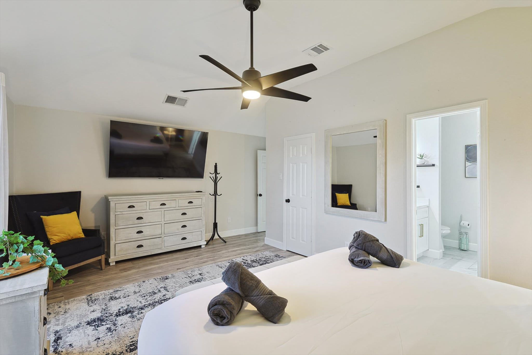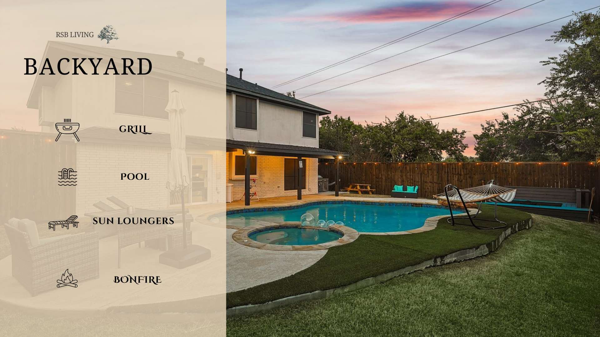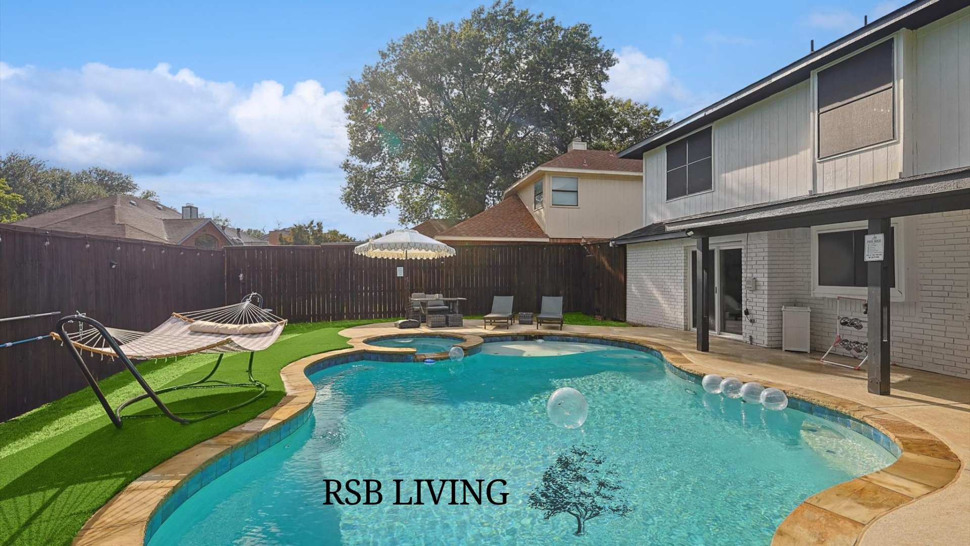 Welcome to this beautifully renovated 4-bedroom, 2.5-bathroom home, just 5 minutes from the stunning Lewisville Lake! This two-story oasis features a private pool, perfect for daytime swimming and BBQs. As evening falls, gather around the fire pit to relax and enjoy some delicious s'mores. Ideal for family and friends, this home offers the perfect balance of outdoor fun and cozy relaxation. Experience the best of DFW from this incredible retreat!