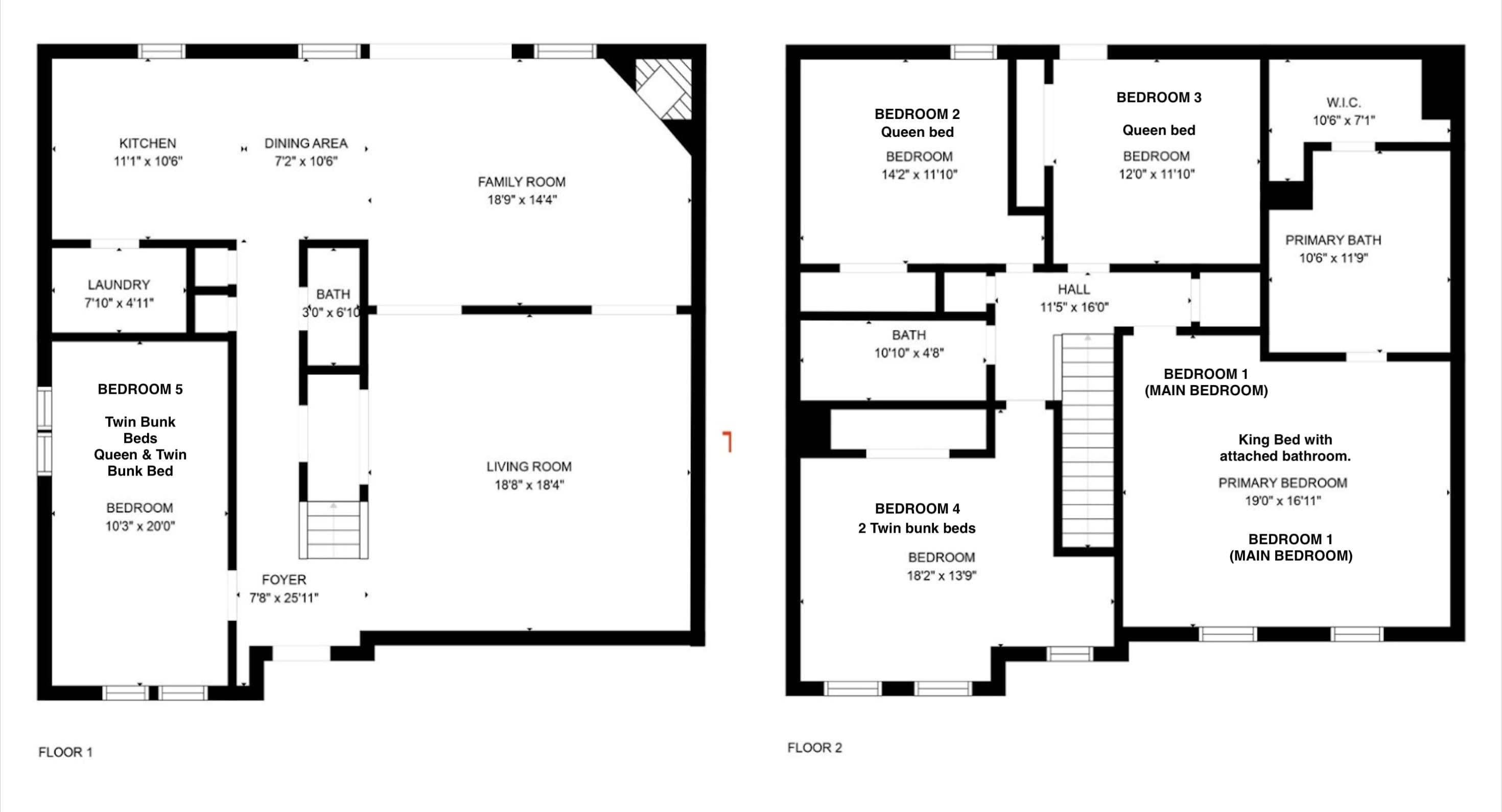 5 Bedrooms 7 Beds 2.5 Bathrooms 12 Sleeps