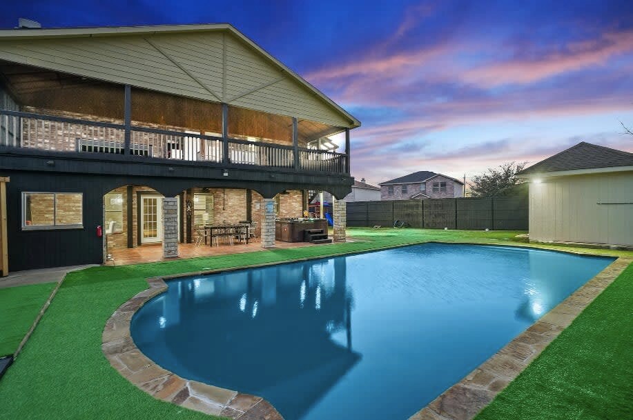Our 5-bedroom, 2.5-bathroom home in Grand Prairie is the perfect getaway! Modern and stylishly updated, it features an amazing hot tub and plenty of space to relax. Enjoy endless fun in the game room with a pool table, ping-pong, hockey table, and poker table—perfect for making memories.