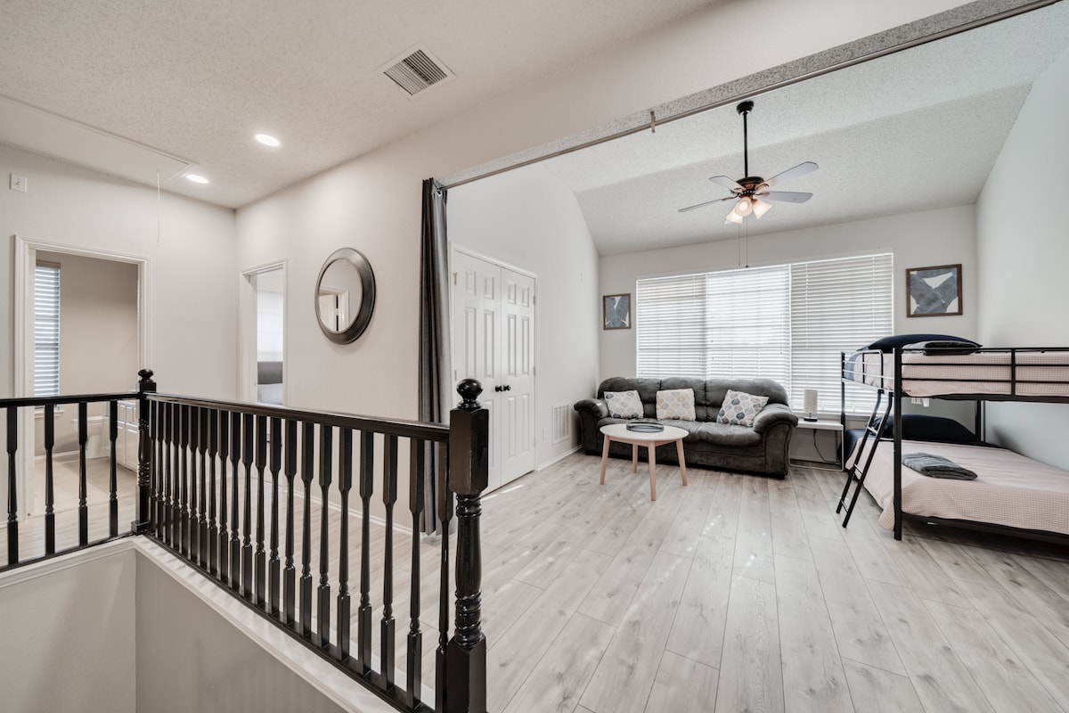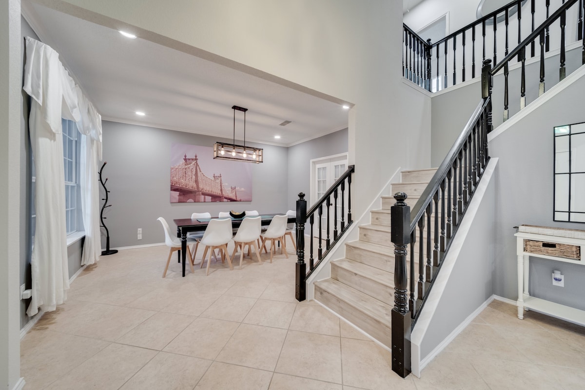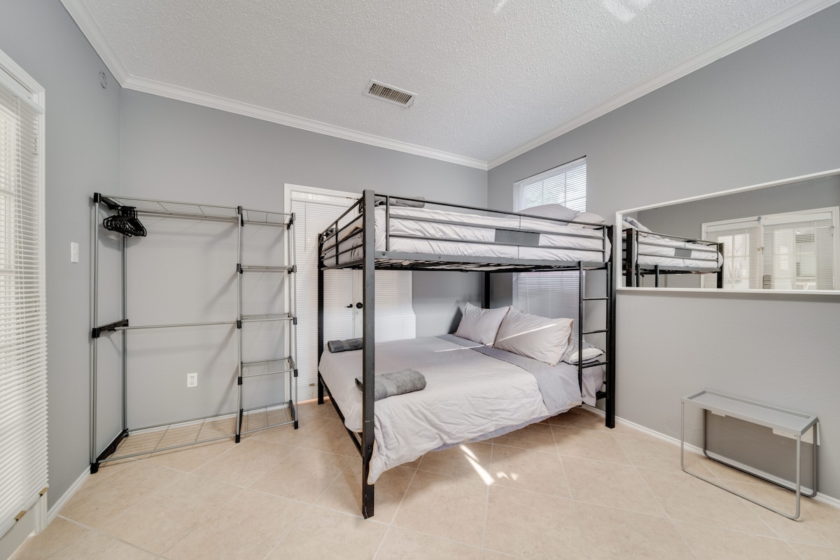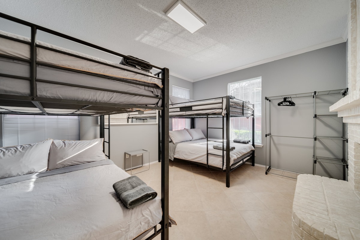 This home provides a HUGE space, perfect for creating memories, and is equally stunning both inside and out. This gorgeous 5-bedroom, 2.5-bath home has everything you’re looking for! The spacious kitchen, fabulous living room, and luxurious finishes make this home a perfect retreat for you and your loved ones. With plenty of space to spread out, this home offers the perfect balance of comfort and elegance. The amazing backyard, complete with a pool and grill, is ideal for family gatherings, barbecues, or relaxing by the water. -Fifth room available for groups of 8 to 10 guests -Sixth room available for groups of 10 to 16 guests We’re excited to host you and ensure that you have an unforgettable experience! Our call center is available 24/7 during your stay to assist with anything you may need.