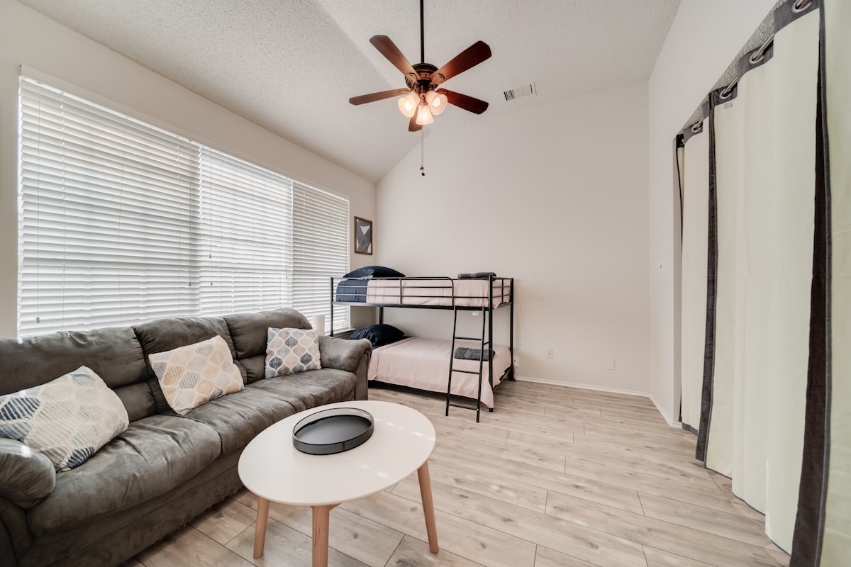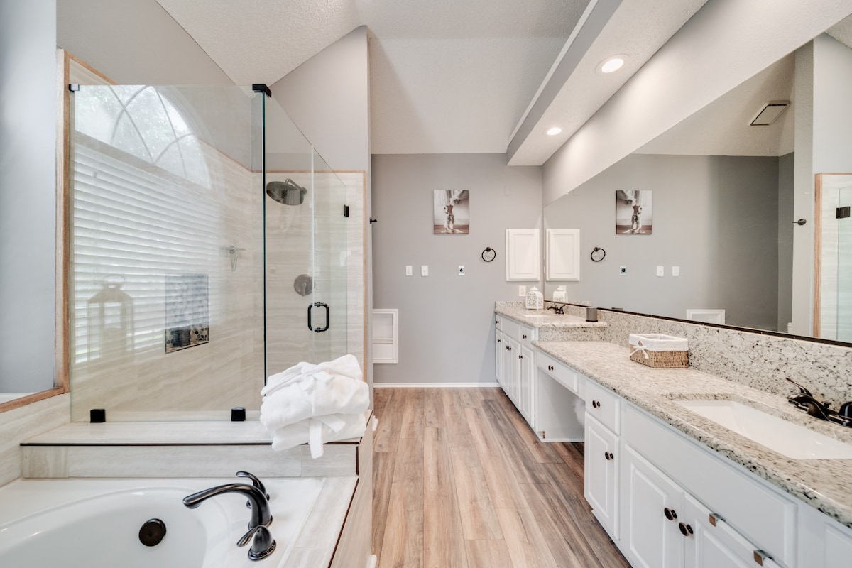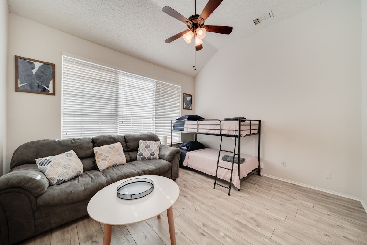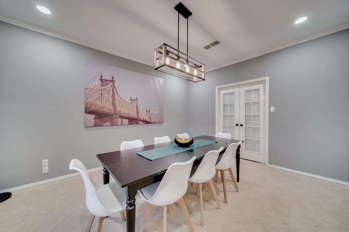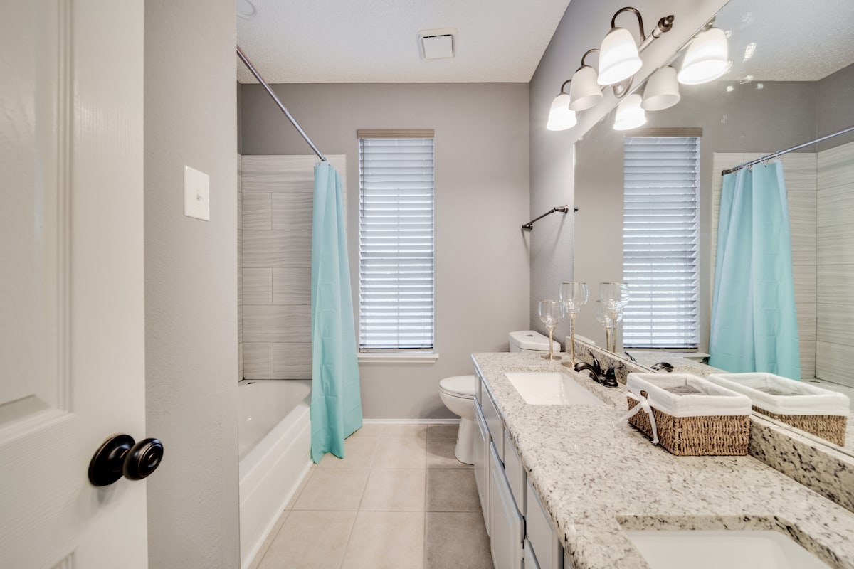This home provides a HUGE space, perfect for creating memories, and is equally stunning both inside and out. This gorgeous 5-bedroom, 2.5-bath home has everything you’re looking for! The spacious kitchen, fabulous living room, and luxurious finishes make this home a perfect retreat for you and your loved ones. With plenty of space to spread out, this home offers the perfect balance of comfort and elegance. The amazing backyard, complete with a pool and grill, is ideal for family gatherings, barbecues, or relaxing by the water. -Fifth room available for groups of 8 to 10 guests -Sixth room available for groups of 10 to 16 guests We’re excited to host you and ensure that you have an unforgettable experience! Our call center is available 24/7 during your stay to assist with anything you may need.