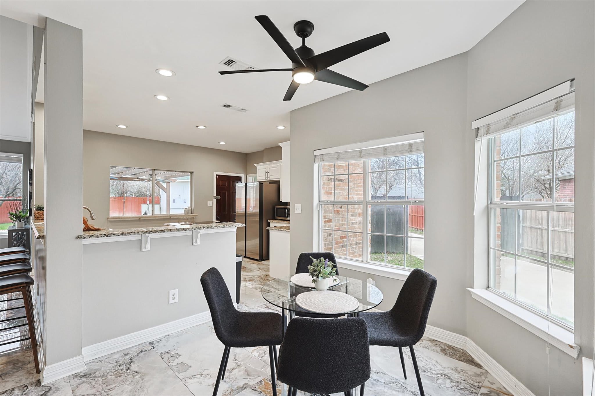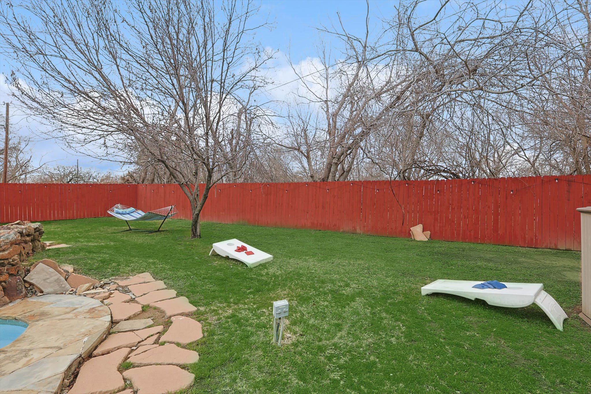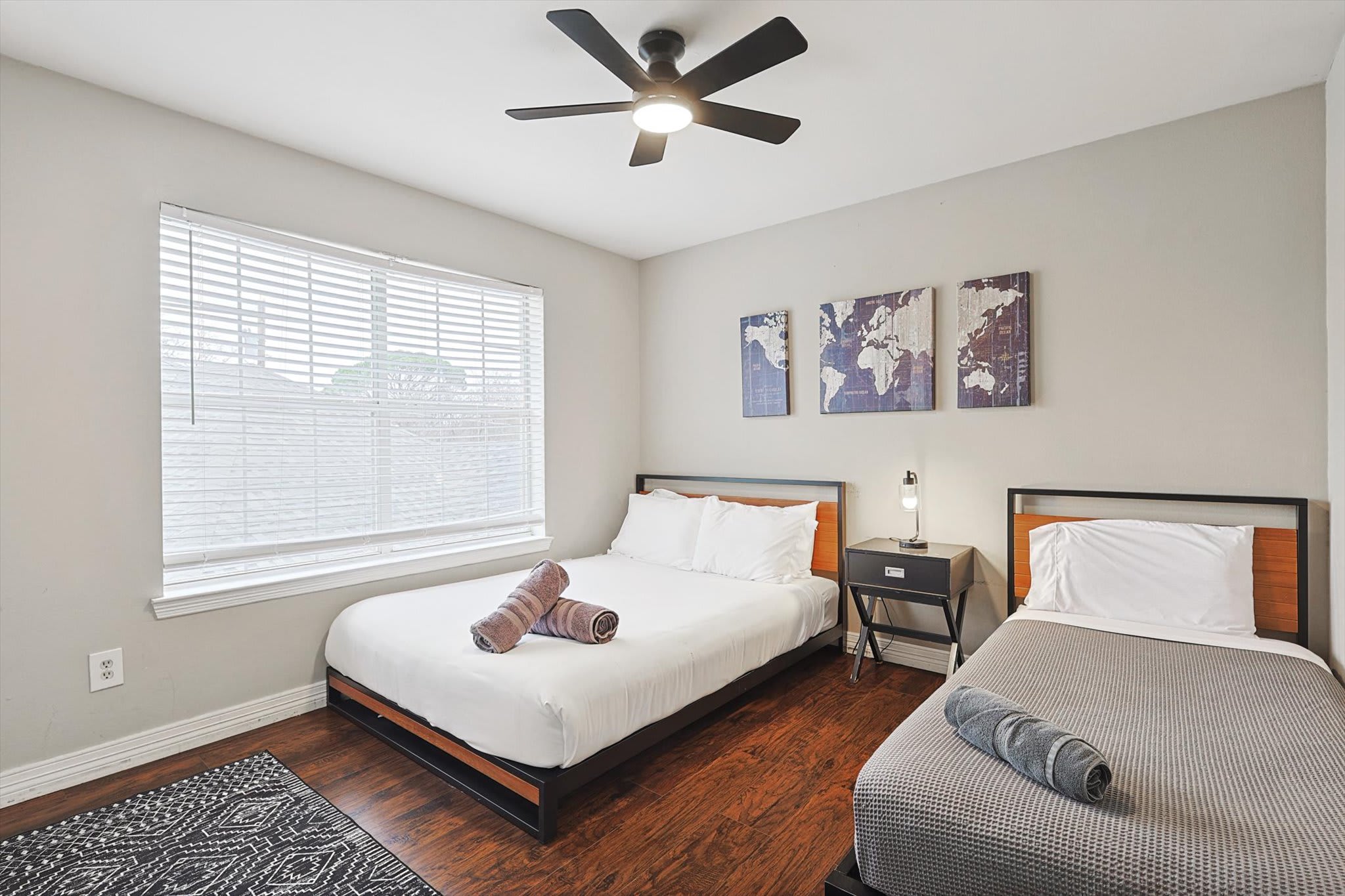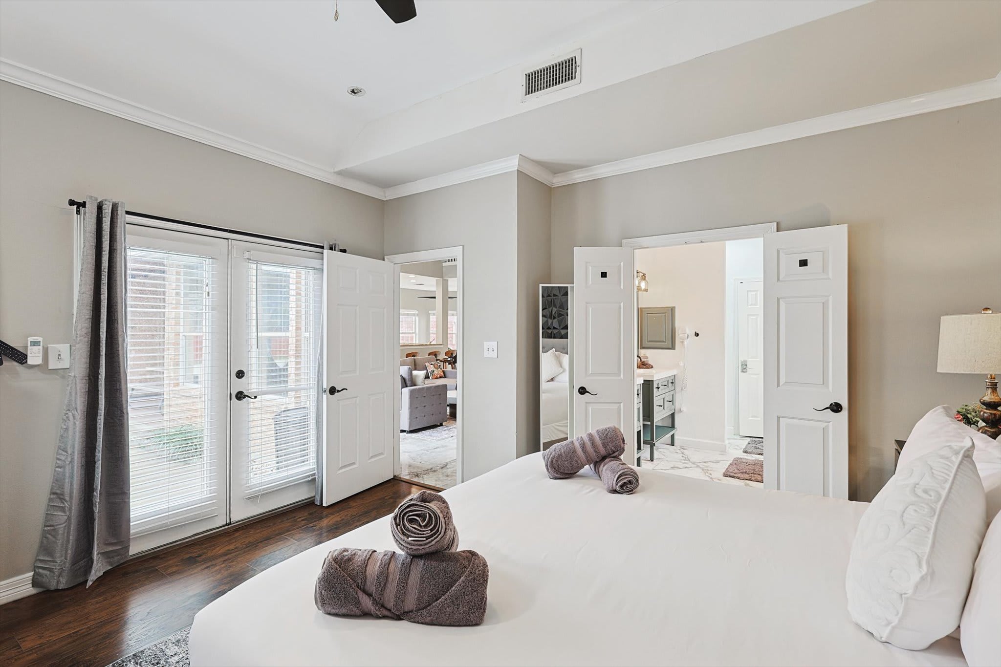 Beautiful 5-Bedroom, 2.5-Bathroom Modern Home with Pool & Patio This stunning home offers everything you need for a perfect getaway! Relax and unwind in the sunny, spacious backyard, featuring a large private pool, beautiful pergola, and plenty of sitting areas. Enjoy the covered patio, grill, and patio furniture—ideal for family gatherings or dinners under the stars. Inside, you'll find a bright and airy open-concept living space with cathedral ceilings, a cozy fireplace, and a fully equipped kitchen, making it perfect for preparing meals. The wet bar with glassware adds a touch of elegance, and with 3 HDTVs featuring cable and Apple TV, you'll have entertainment for everyone. Located in a fantastic Mid Cities area, this home is just a short drive from downtown Dallas (14 miles), AT&T Stadium (12 miles), and only a 10-minute drive to DFW Airport, making it the perfect base for your adventures. Our call center is available 24/7 during your stay to ensure you have a seamless experience!