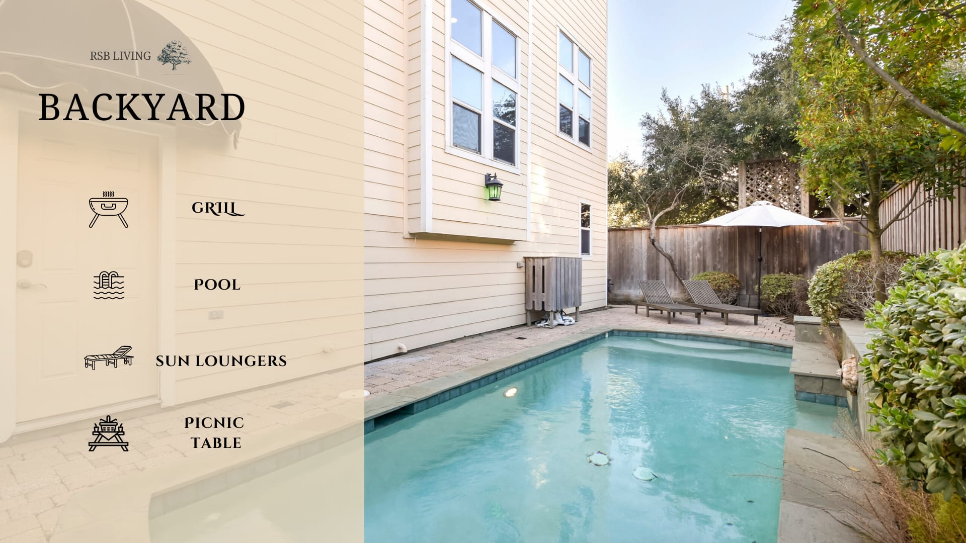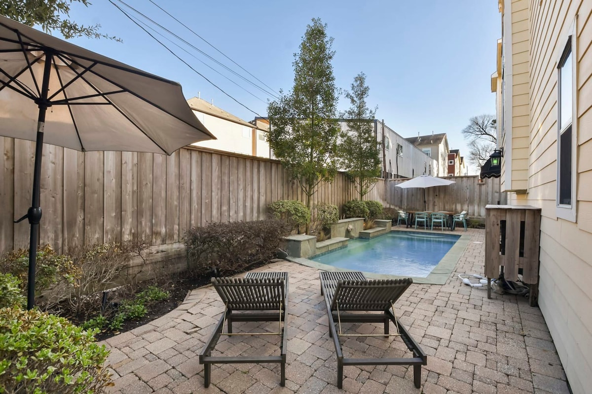 Welcome to The Heights! This luxurious vacation rental is the perfect retreat, offering everything you need for a quick weekend getaway or an extended stay. Located in a vibrant neighborhood, with restaurants, cafes, and bars just a short walk or bike ride away, you'll have everything at your fingertips. The private backyard features a tranquil pool surrounded by lush landscaping, lounge chairs for relaxing, and an outdoor dining area with a charcoal grill—ideal for barbecues. Whether you're unwinding or hosting a gathering, this home provides the perfect balance of comfort and convenience.