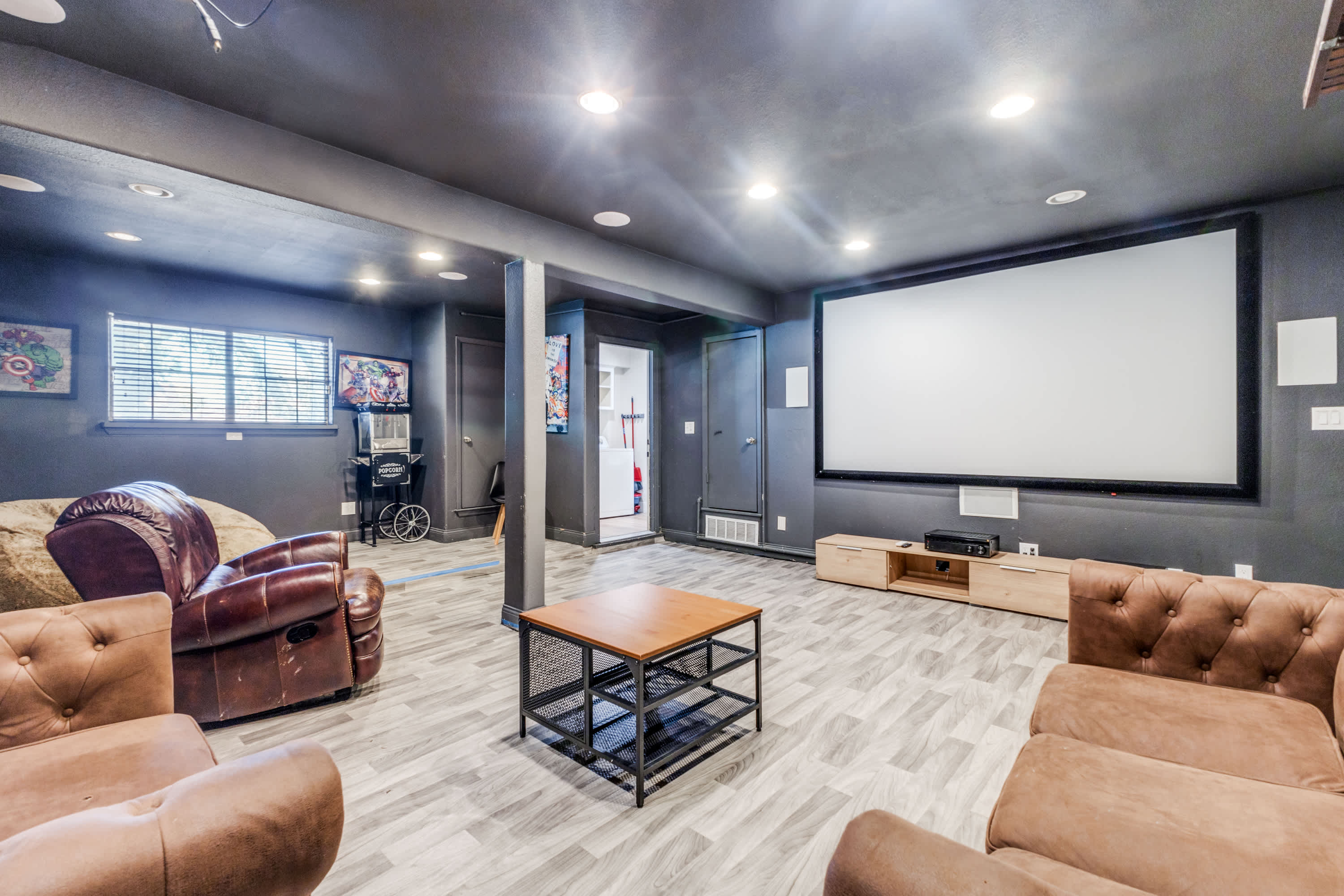 Beautiful 5BR home with private spaces for comfort and spacious common areas to relax and dine. Enjoy a private cinema room for cozy movie nights. The resort-style backyard features a large pool, grill, and charming patio for unforgettable gatherings. A fully equipped kitchen makes meal prep easy. Just steps from Dallas’s top bars and restaurants, this home offers the perfect mix of relaxation and excitement for your stay!