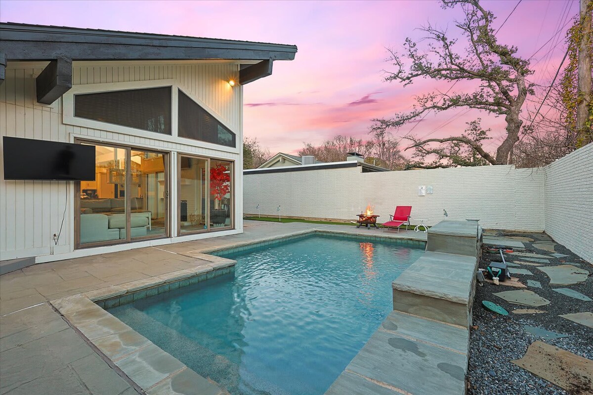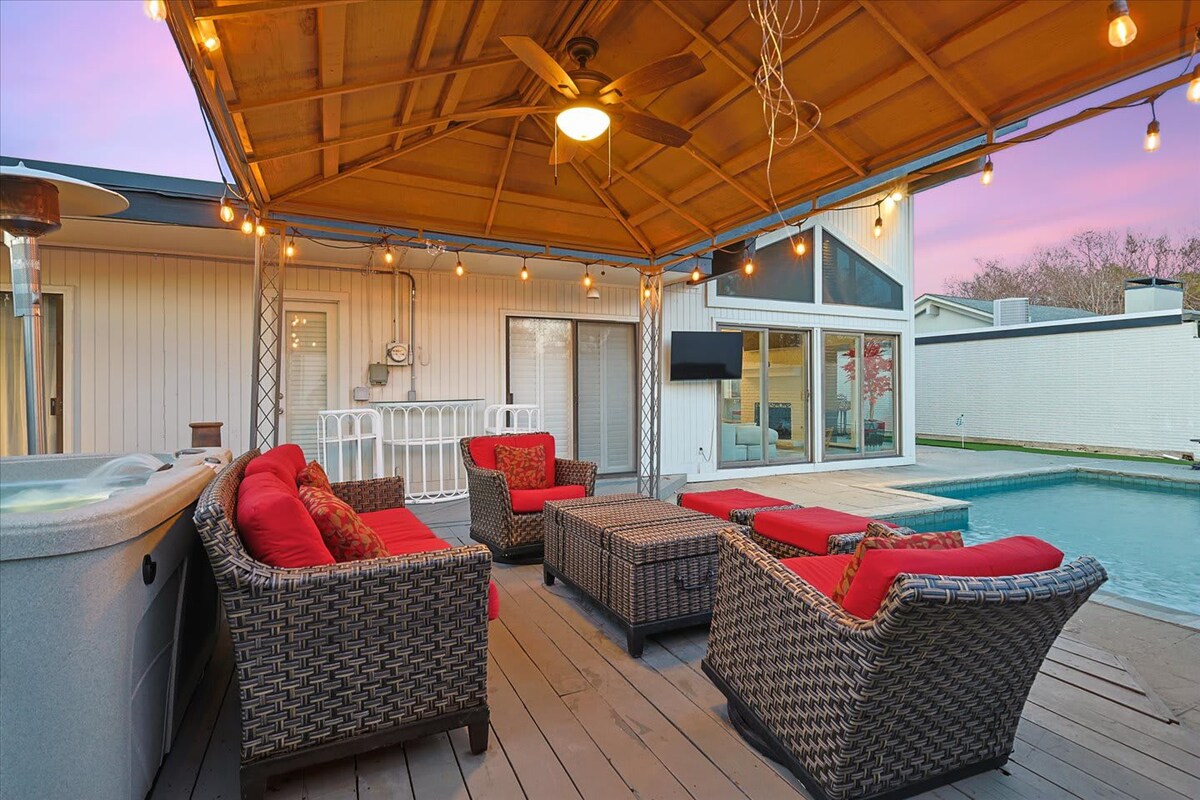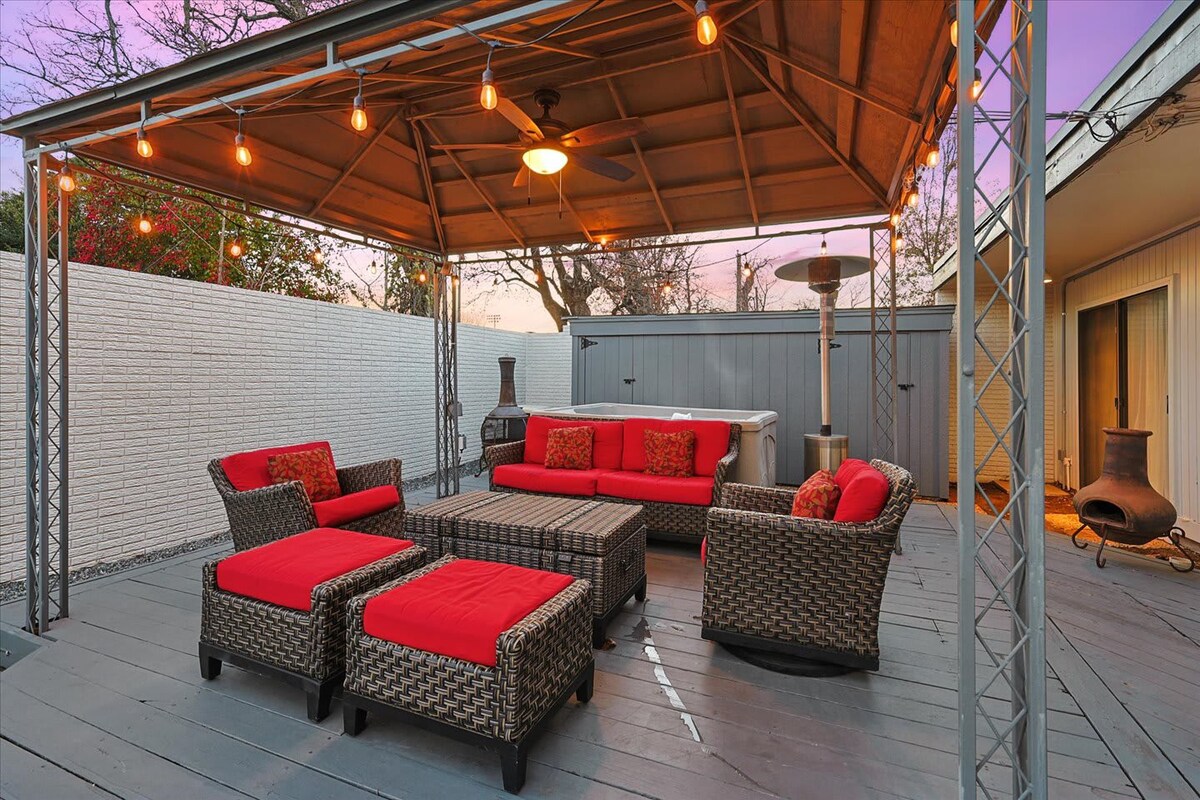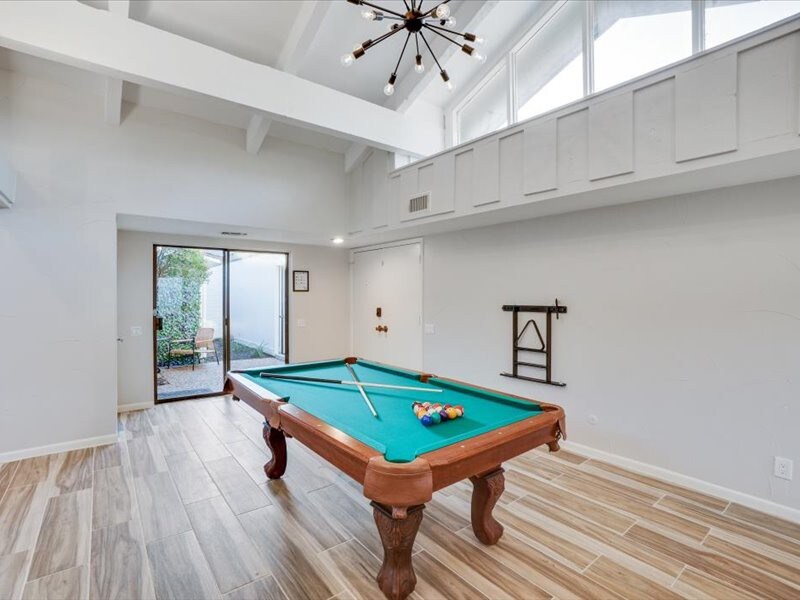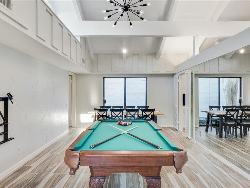 Have fun with the whole family at this stylish retreat! Located in a safe and convenient neighborhood between Irving, Dallas, and Grand Prairie, this luxurious home offers the best LOCATION for your getaway. Enjoy the pool, ping pong table, mini-golf strip, and more for endless fun. This home is fully equipped with all the amenities you need, including a stocked kitchen, 82" TVs with Apple TV, and High-Speed WiFi (400 Mbps). Rest easy on high-quality memory foam mattresses, premium bedding, and plush towels. Perfect for families and large groups, it can accommodate up to 5 cars. The management team, with years of hosting experience, will be available 24/7 to ensure your stay is seamless. Welcome to this updated home with a backyard made for entertaining! With 4 bedrooms, 2.5 baths, hard surface floors, and a spacious living room filled with natural light, you'll have plenty of room for gatherings. The wood-burning fireplace adds a cozy touch to chilly evenings. The master bath features an updated glass shower, and the outside dining area, sunbeds, and modern pool are perfect for relaxing or hosting meals. The backyard also includes an 8-foot privacy fence for your peace and privacy. Please note: The pool house is used for storage and not accessible to guests.