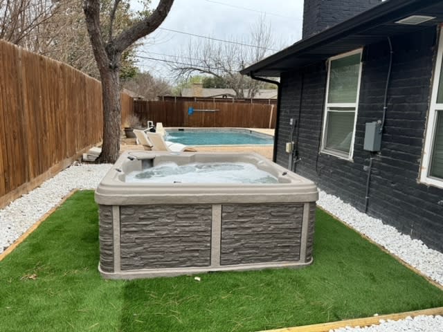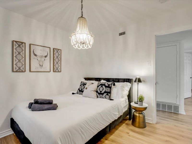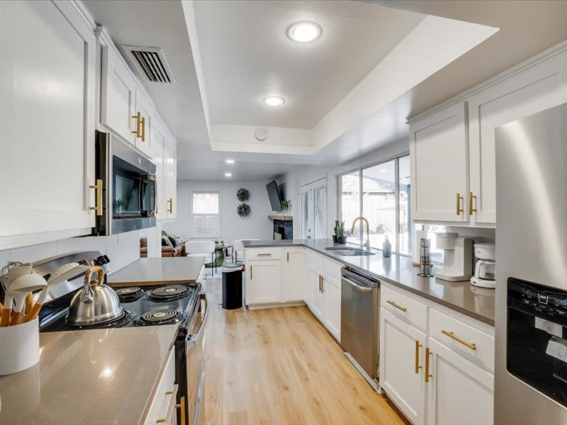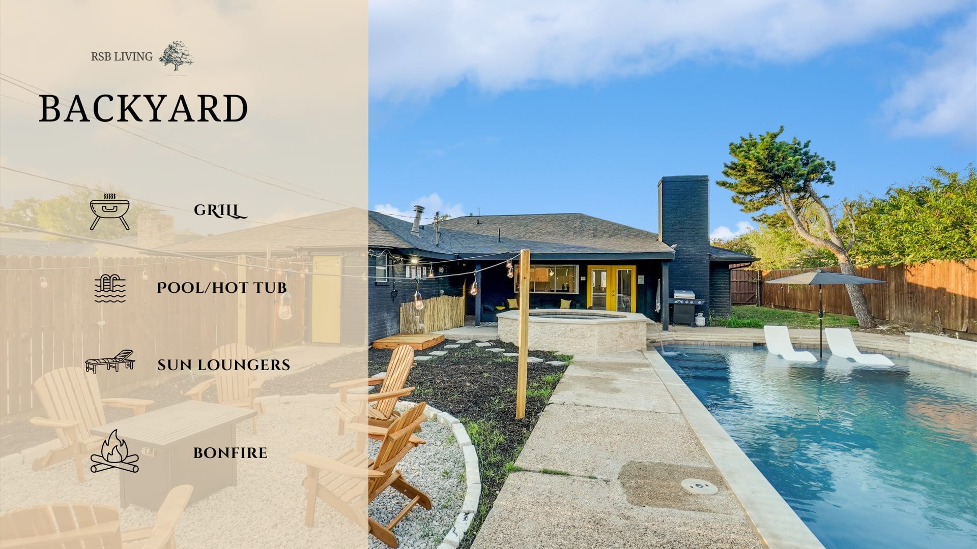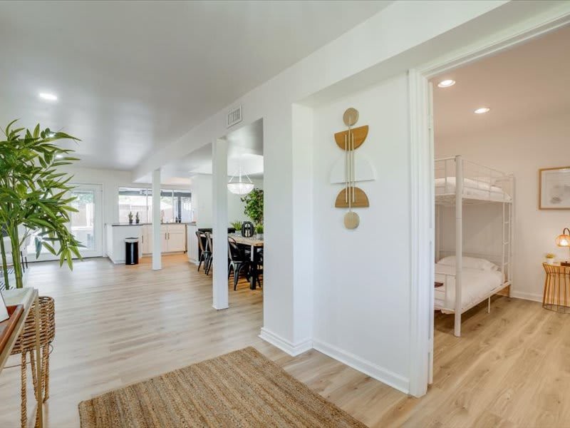 This modern home was recently renovated and designed immaculately, offering a perfect blend of style and comfort. The décor is sleek and homey, creating a welcoming atmosphere for your stay. Complemented by a breathtaking outdoor space, perfect for lounging and relaxing, the grand pool and brand-new hot tub make it ideal for unwinding. The backyard is fenced with a private gate that opens to nature, giving you a true sense of tranquility right outside your door.