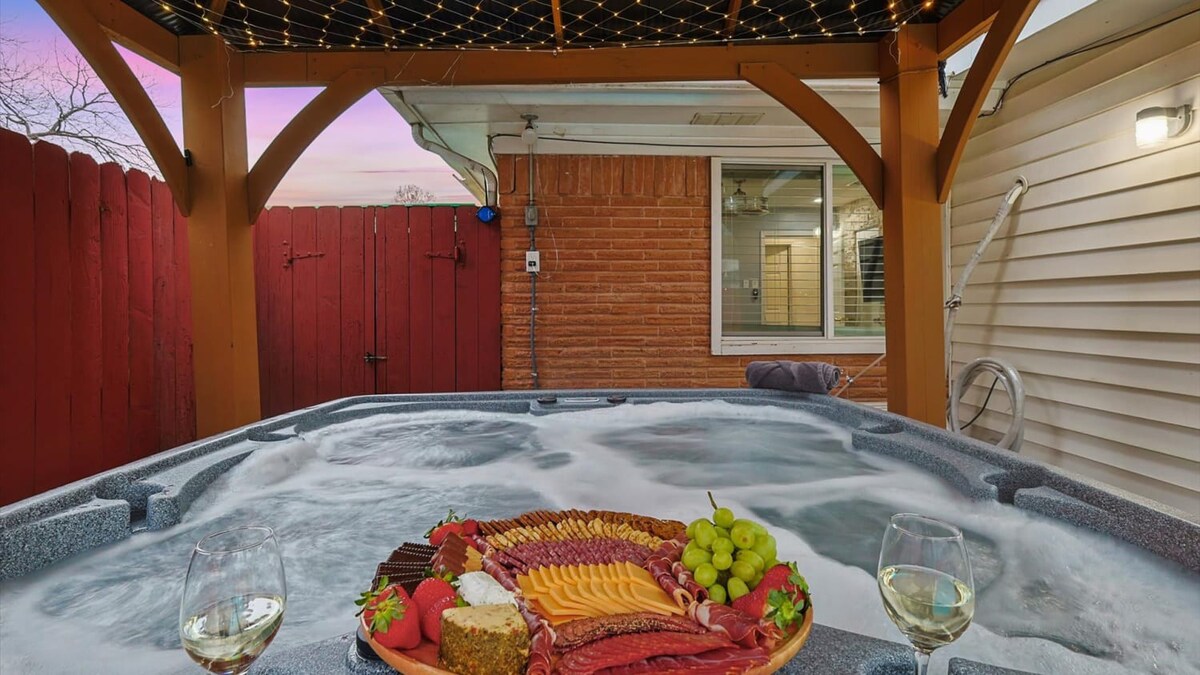 Get ready for the ultimate getaway at this spacious 5-bedroom corner-lot home, perfect for family or friends. Relax by the pool, grill out, or unwind in the hot tub under the stars. With large bedrooms and a unique layout, there’s space for everyone. Walk to Downtown’s restaurants and bars, then recharge—literally—with the on-site EV charger. Create unforgettable memories in comfort and style!