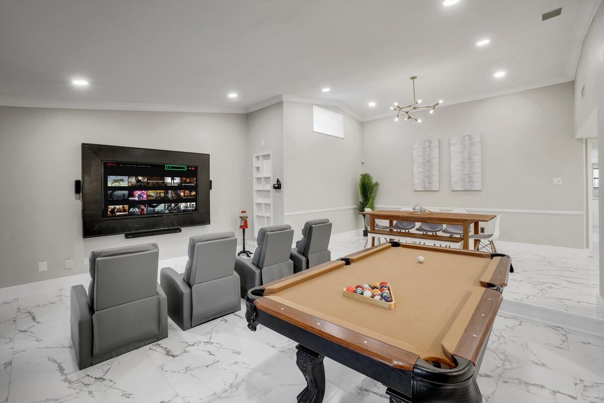 Remodeled Carrollton retreat with 4BR, 2.5BA, and private pool (2-ft kids’ area). Sleeps up to 8 guests, with a maximum of 7 adults and no more than 4 unrelated individuals. Enjoy the backyard oasis with grill, mini bar, patio, and outdoor shower. Inside, a game room with pool table, cinema room, and fully equipped kitchen offer fun and comfort. Perfect for families and groups seeking relaxation and lasting memories.