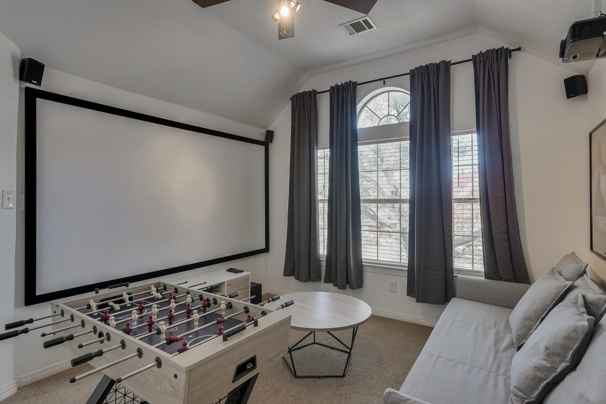 This spacious property boasts a private pool perfect for swimming and a cinema room ideal for cozy movie nights with loved ones. Located in a quiet neighborhood, you’re just minutes from local attractions and the vibrant Dallas city life.The modern kitchen, elegant bedrooms, and expansive living areas provide comfort and style for your stay. Whether you're planning a family gathering or a getaway with friends, our home offers the ideal setting for creating unforgettable memories.