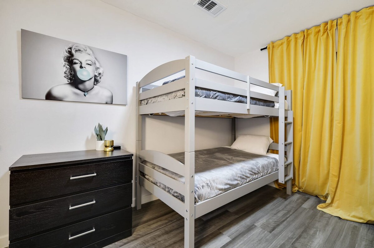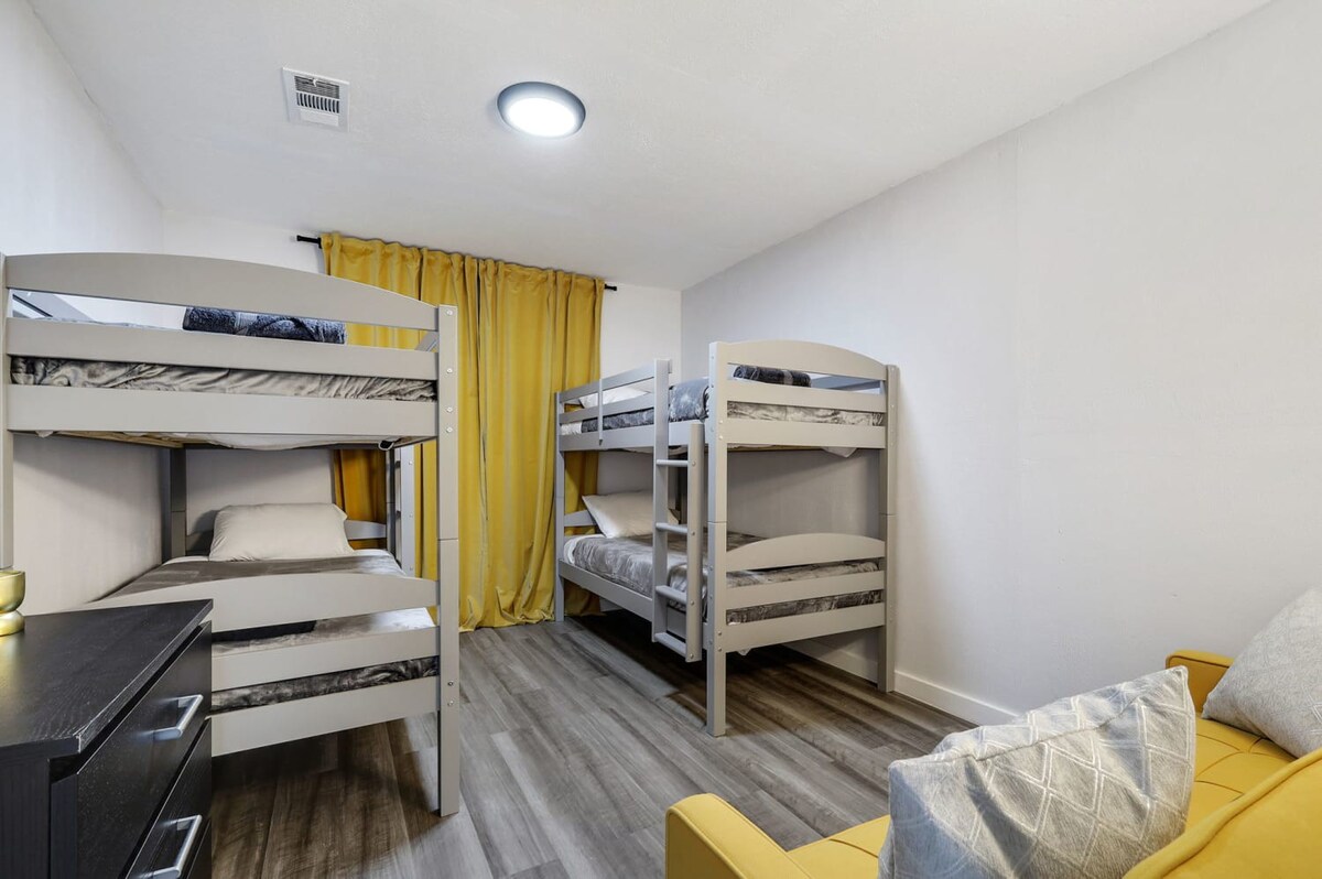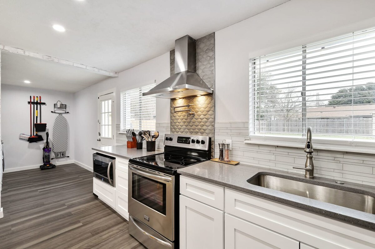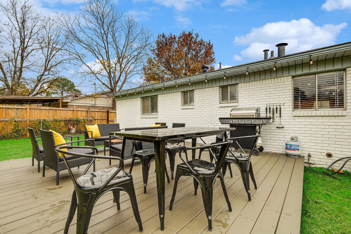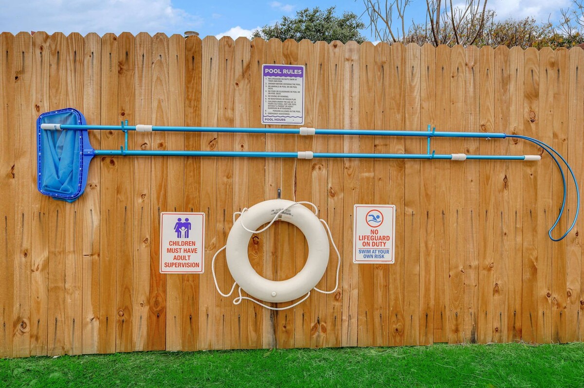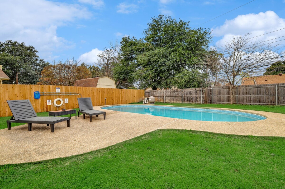 Welcome to our charming bungalow in North Richland Hills, your perfect retreat! Just 15 minutes from Dallas/Fort Worth Airport, this stylish getaway features 3 bedrooms and 2 bathrooms, comfortably accommodating up to 9 guests. With an open layout ideal for gatherings and a refreshing swimming pool, it’s the perfect place to relax. Enjoy a fully equipped kitchen, free laundry, and the cozy ambiance of this home away from home, designed to make your stay extra special. Book your stay now for a memorable experience!